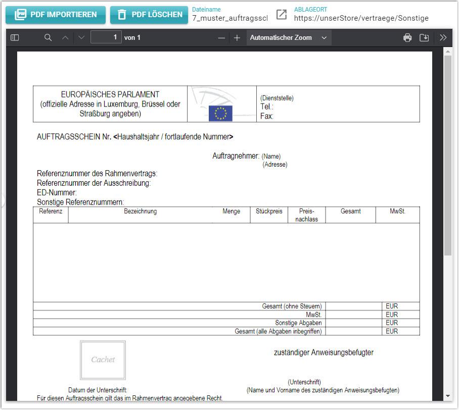Click the button to import a contract document in PDF format. A dialog will appear where you can select the PDF document.
