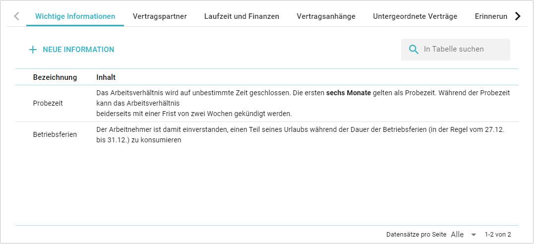 In this section, you can add information to a contract that you consider to be particularly important. Usually, these will be passages from the contract that deserve your attention.